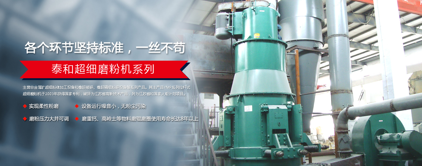 宜興市泰和機械有限公司是在國家高新技術開發區注冊的一家科技民營企業。主營非金屬礦超細粉體加工設備和橡膠破碎、橡膠精細粉碎設備等系列產品。其主產品YMP系列拉桿式超細磨粉機于2003年獲